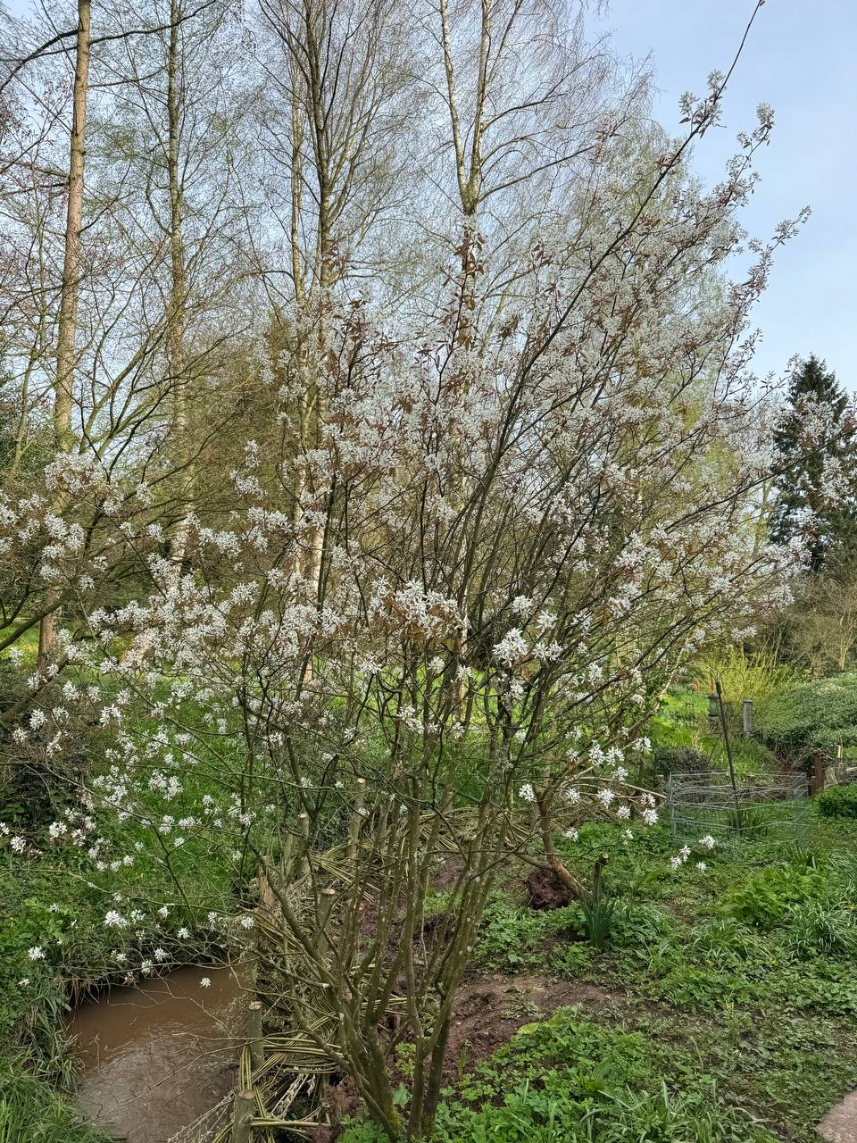 It’s amelanchier season! I love the little starry white flowers that fall like confetti when they finish. The soft coppery pink new leaves.