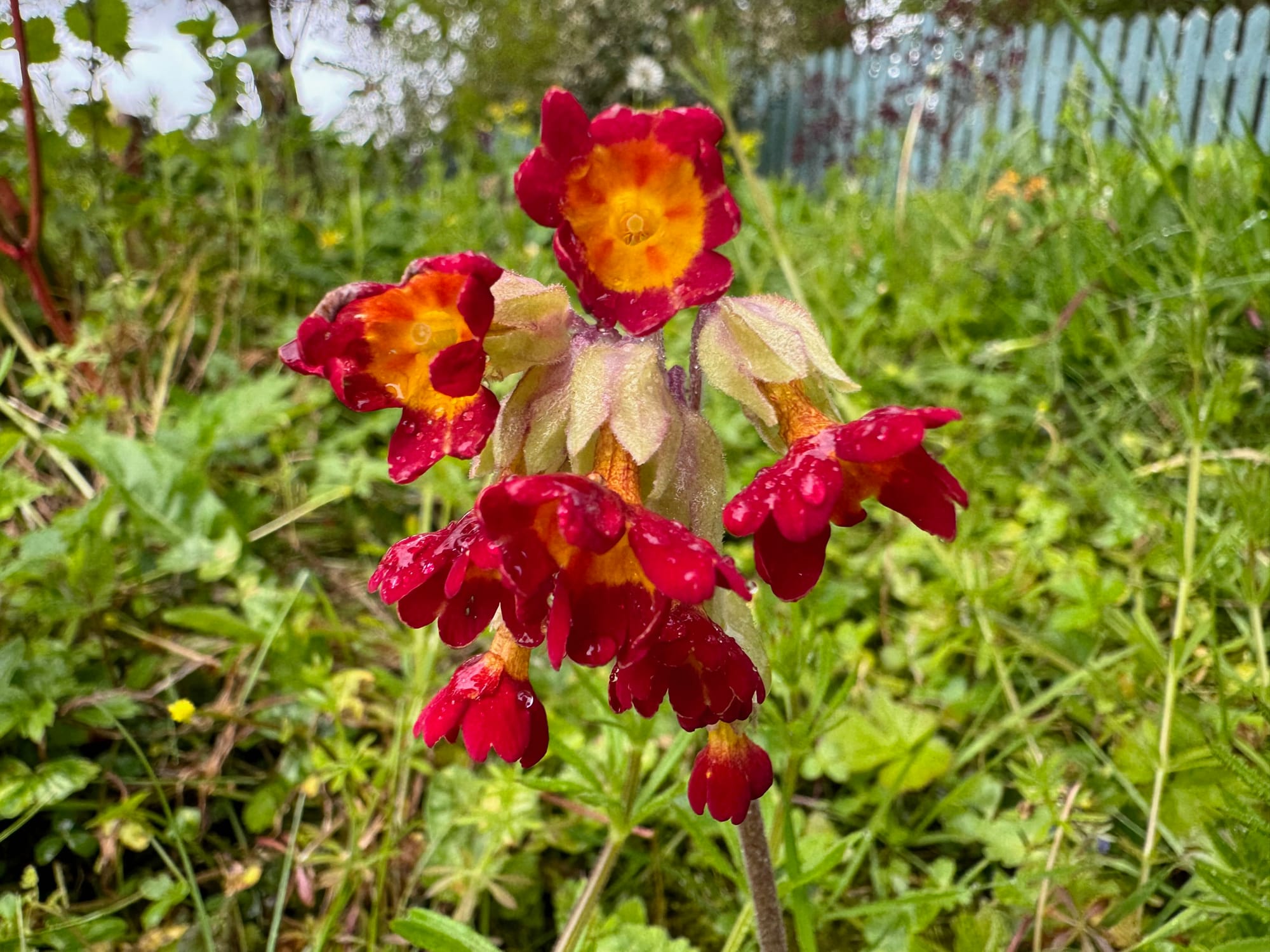 The cowslips are loving this wet spring. They have self seeded all through our wildflower lawn. Two colours - yellow and this gorgeous red, that fades through to orange.